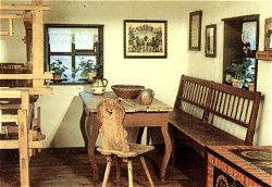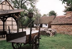Die neben dem Schloß errichtete Freianlage gibt einen Einblick in die ländliche Lebensweise der Bauern der Niedetrlausitz. Die bäuerliche Hofanlage besteht aus einem Wohn-Stallhaus, einer Scheune mit Remise, einem Ziehbrunnen, einem Taubenständer, einem Bienenstand und einem Backhaus. Das Bauernhaus und die Scheune sind Umsetzungen, bei den anderen Objekten handelt es sich um Kopiebauten mit originalem Material, nach originalen Befunden aus den vom Braunkohletagebau Welzow-Süd weichenden Dörfern des Landkreises Spree-Neiße. Das Bauernhaus als ältestes der Objekte ist um 1780 errichtet worden und war bis ca. 1940 als Auszugshaus bewohnt. Mit seiner Innenausstattung und den dazugehörigen Arbeitsgeräten verdeutlicht es heute die ländliche Wohn- und Lebensweise der Heidedörfer um 1900. zurück ![]() |