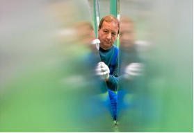 Christian Görke (Linke) die Glasmanufaktur besucht, in der die einzige Glasschmelzwanne Europas steht. Görke konnte noch